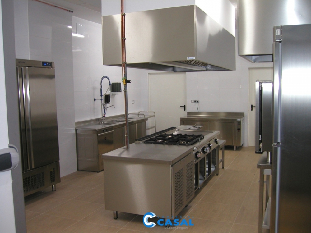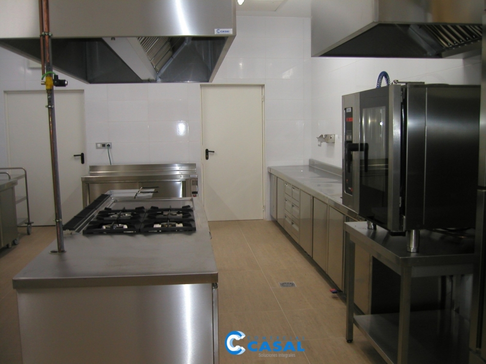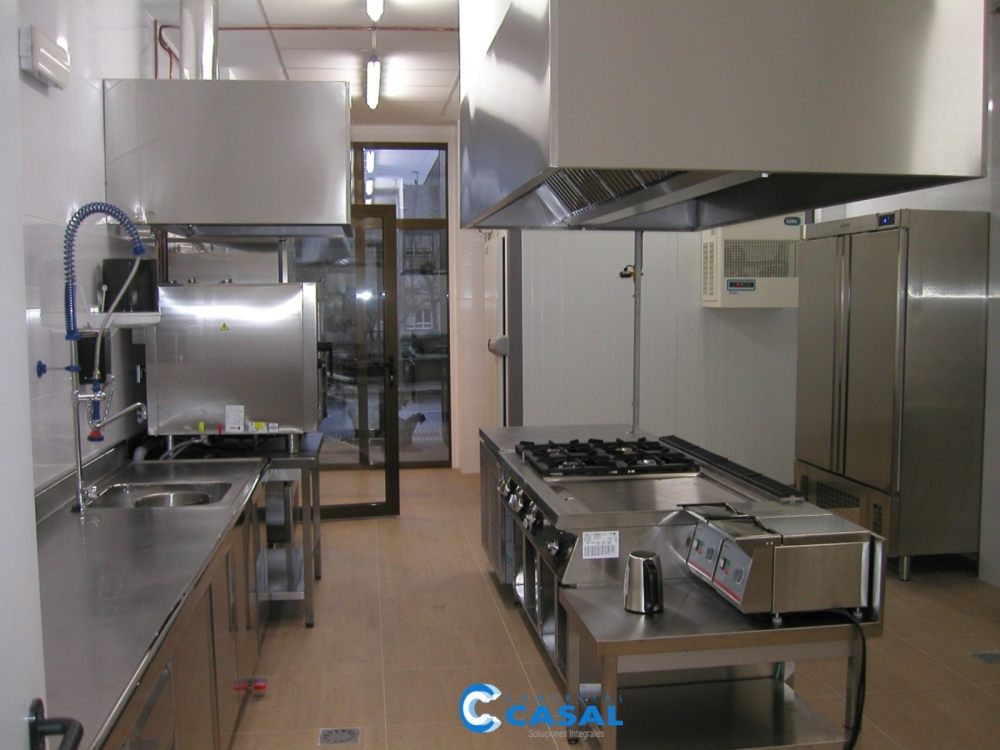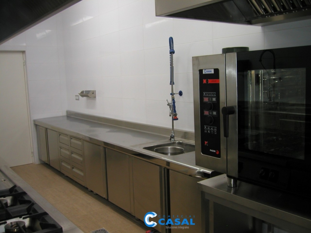 Mobiliario inox. a medida. Mesa fregadero preparación. Fregadero lavado vajilla. Campanas extracción. Lavavajillas.