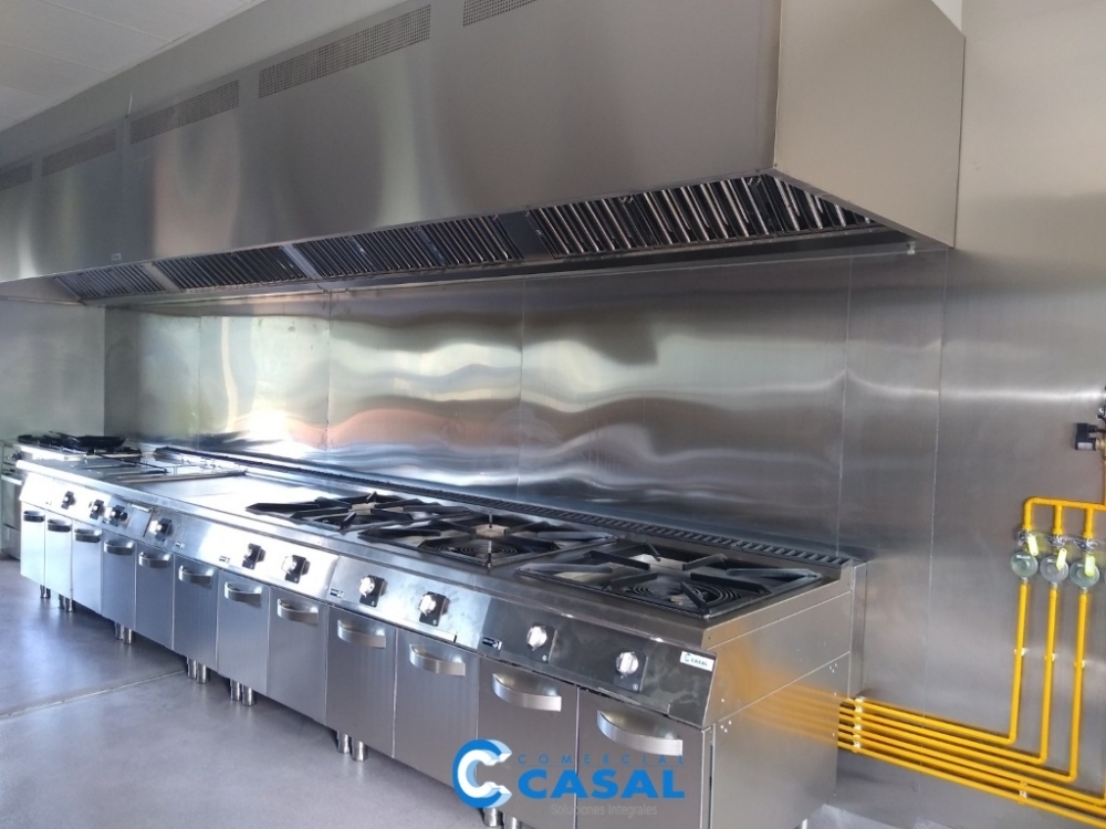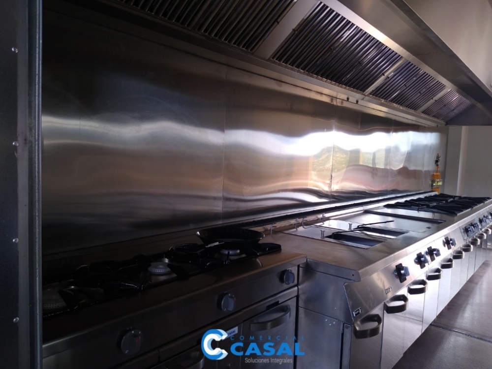 *Campana extracción mural 6mts. con aportación de aire. Forrado de pared bajo campana con plancha de acero inox.