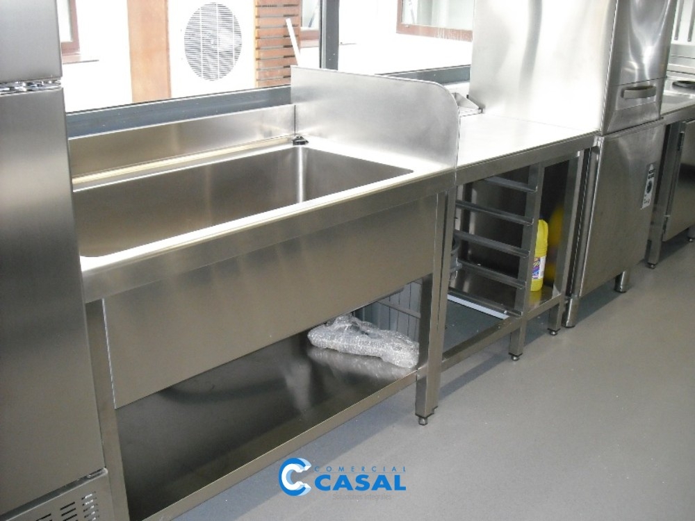 *Mesa de trabajo y fregaderos realizados a medida.