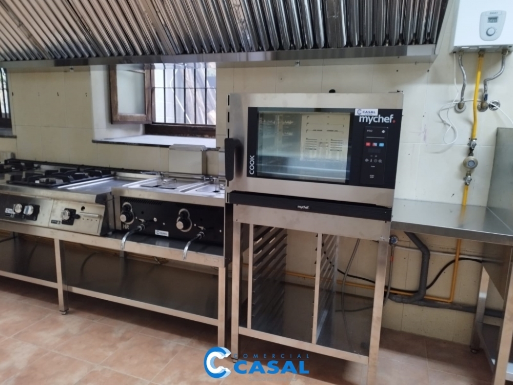 Zona cocción: Gama modular Kore700, Fuegos abiertos, frytop, neutro. Horno convección 4 bandejas. Campana extracción.
