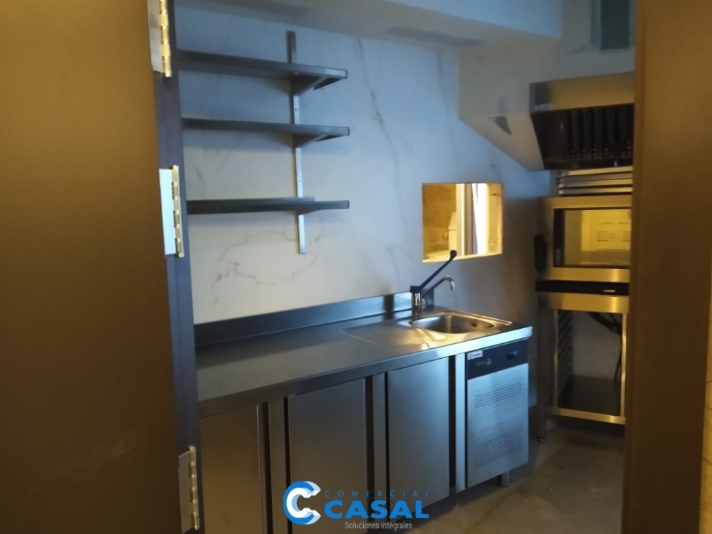 Zona Preparación: Mesa fria GN con fregadero. Armario frio GN. Mesas trabajo. Fregadero.