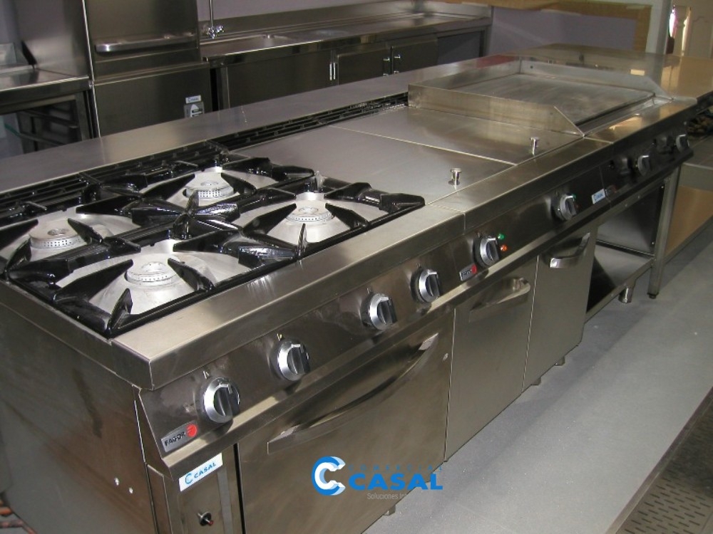 *Elementos cocción Gama 900 colocación central con mesas de apoyo.