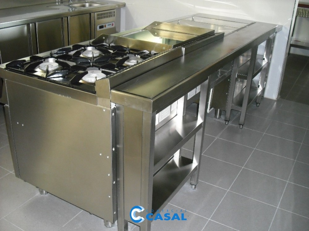 *Equipamiento Gama 700 integrado por: Fuegos abiertos, Frytop Cromo duro, Freidoras. Mesa trasera de apoyo.