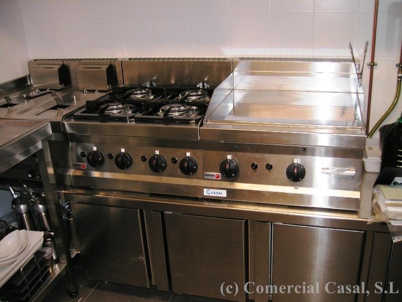 *Acondicionamiento pequeña cocina, Línea 600 integrada por: Fuegos abiertos, frytop cromo duro y freidoras.