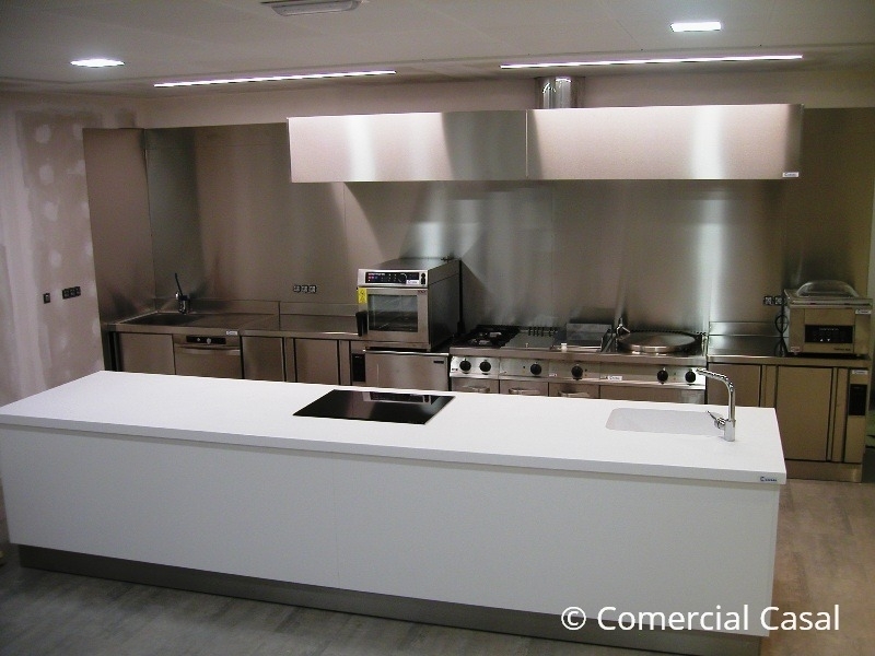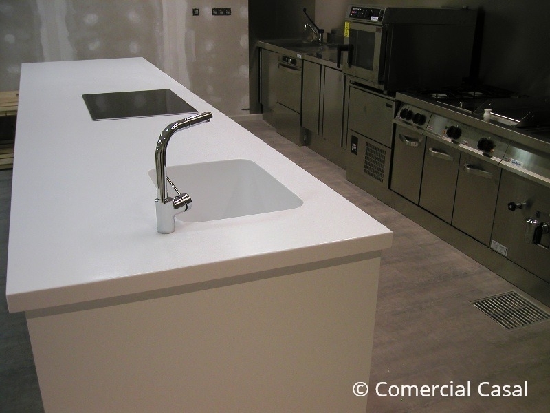 *Isla de cocina central realizada íntegramente en Corian. Placa inducción encastrada.