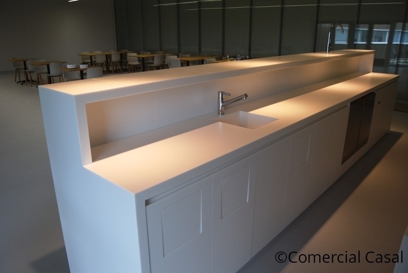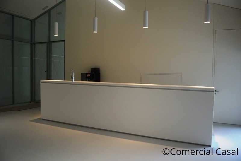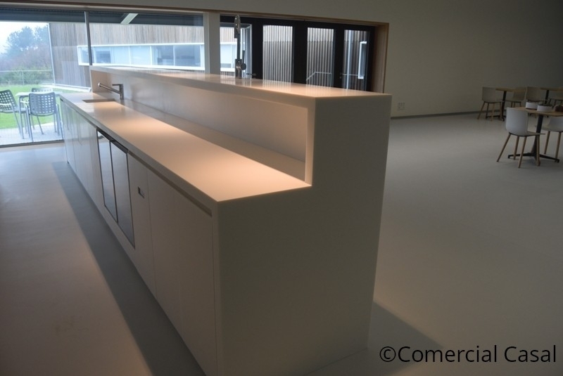 *Zona barra. Muebles realizados en Corian. Integración mesa fria.