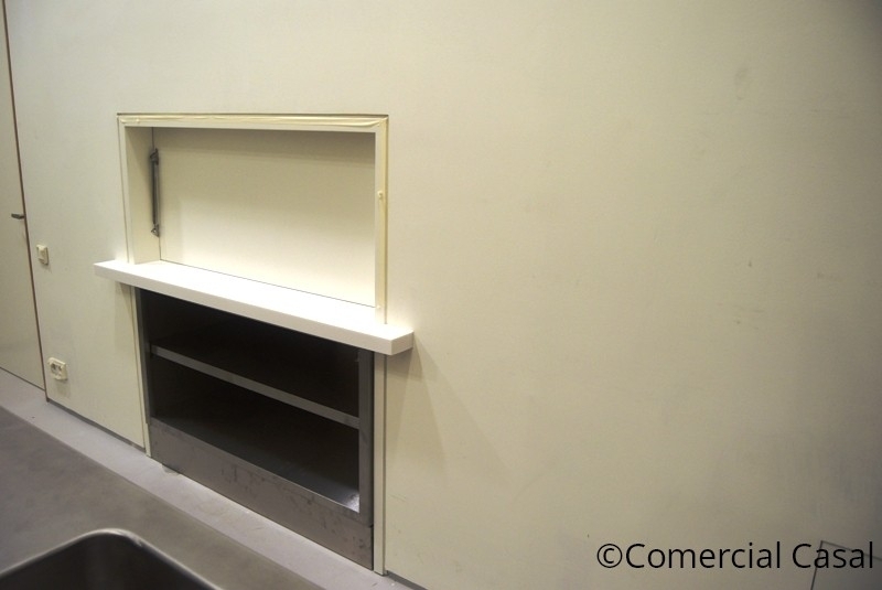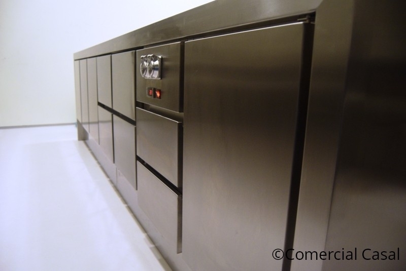 *Mueble central con encimera en una pieza. Total integración: 3 mesas frías GN. Zócalo inferior.