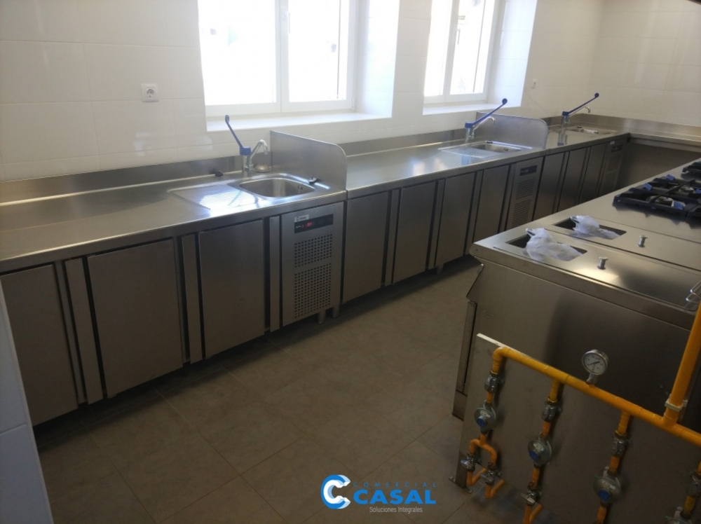 Zona Preparación: Mesas frías con fregadero. Mesados inox.
