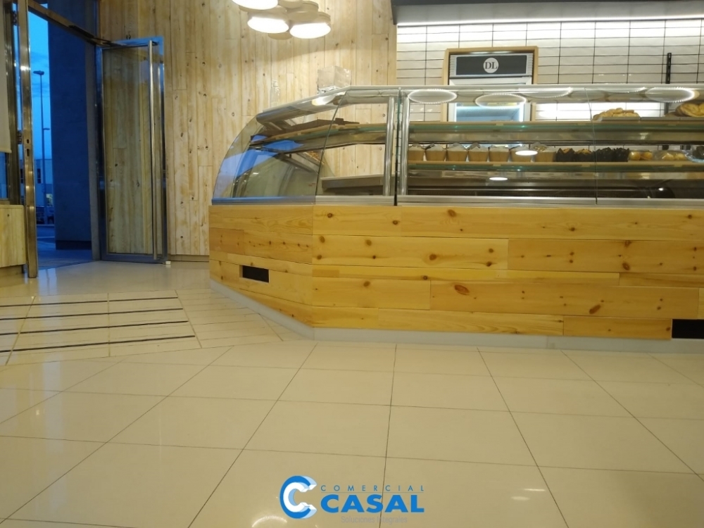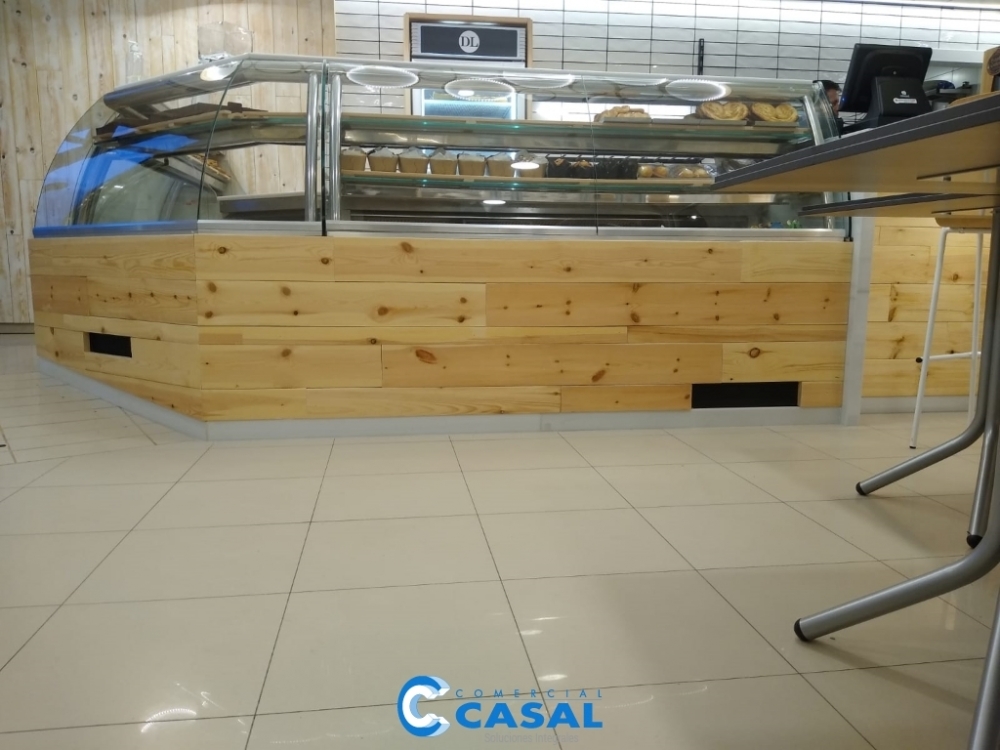 Zona Exposición: Reforma lineal vitrinas refrigeradas y neutras. Armario congelados. Semifrios. Preparación smoothies.