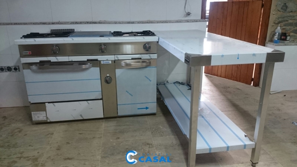 Cocina 3 fuegos + horno. Freidoras 6+6 alta producción.
