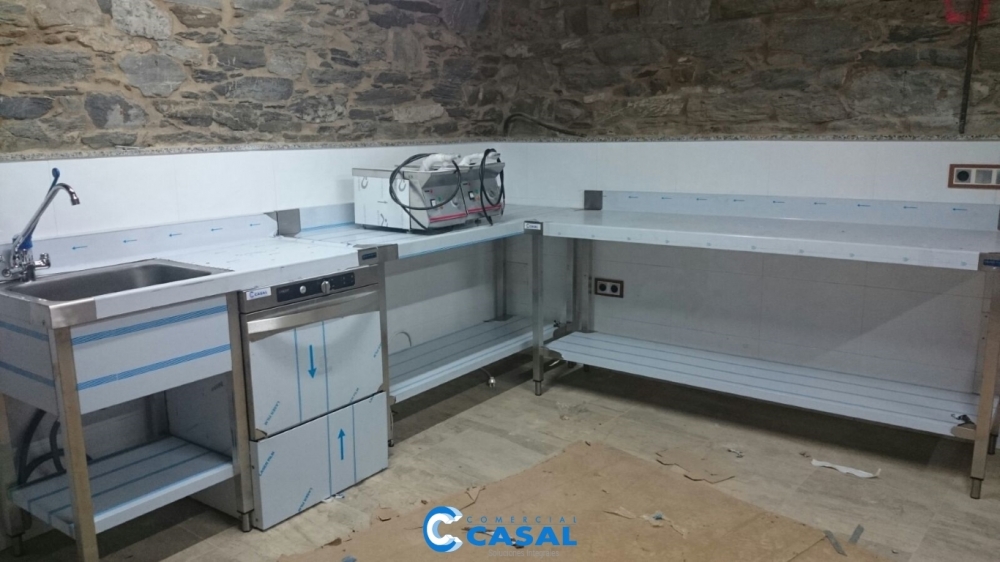 Mobiliario inox. Mesas de trabajo. Fregadero con hueco lavavajillas.