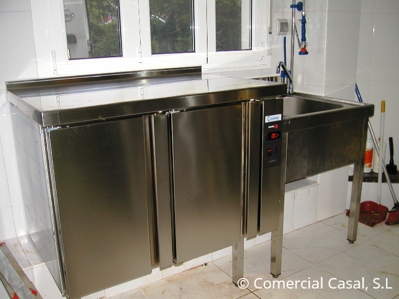 *Mesa fría apoyando bastidor sobre tarima trasera, con prolongación de patas delanteras.